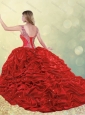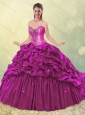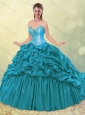 2016 Elegant Puffy Skirt Beaded Teal Quinceanera Dress with Brush Train for Winter
