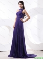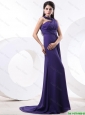 2016 Elegant Ruching Eggplant Purple Prom Dress with Brush Train