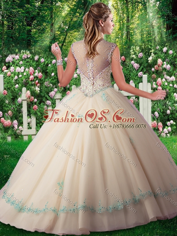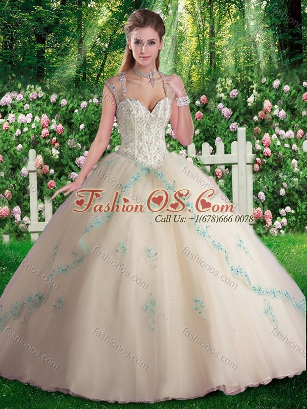 2016 Elegant Sleeveless Beading and Appliques Sweet 16 Dresses in Champange