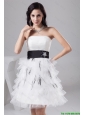 2016 Exquisite Belt and Ruffled Layers White Short Prom Dresses