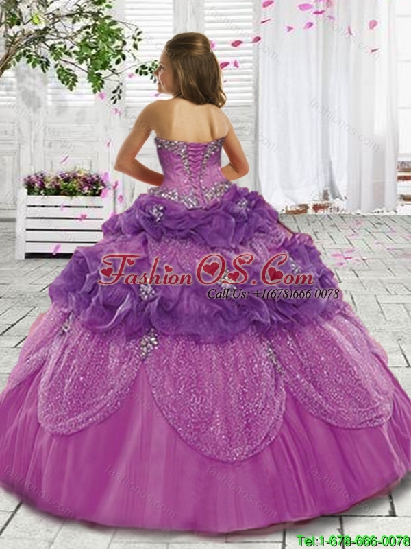 2016 Fall Luxurious Blue Little Girl Pageant Dress with Beading and Pick-ups