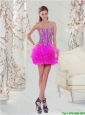 2016 Fall New Style and Detachable Sweetheart Ball Gown Beaded and Ruffles Quinceanera Dresses in Fuchsia