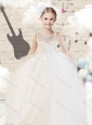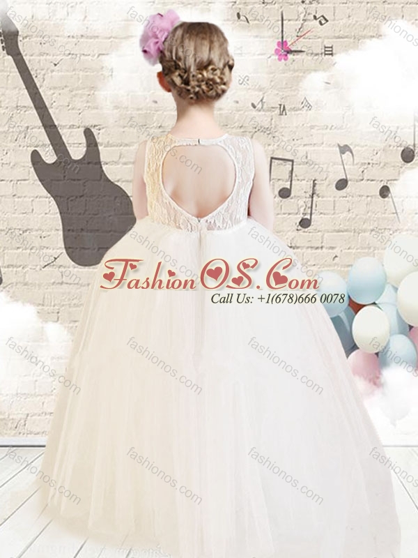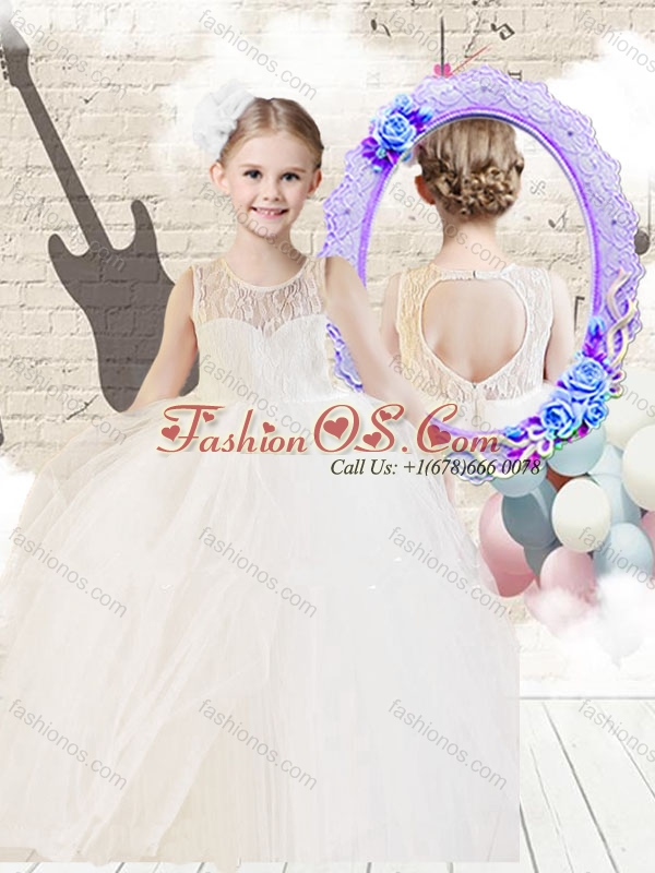 2016 Fashionable Scoop Ball Gown White New Style Little Girl Pageant Dresses with Lace