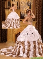 2016 Gorgeous Ball Gown Strapless Brush Train White Quinceanera Dresses