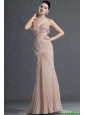 2016 Gorgeous Mermaid Brush Train Pleats Prom Dresses in Champagne
