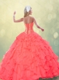 2016 Hot Sale Coral Red Quinceanera Gowns with Beading and Ruffles for Fall