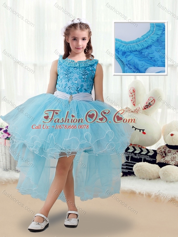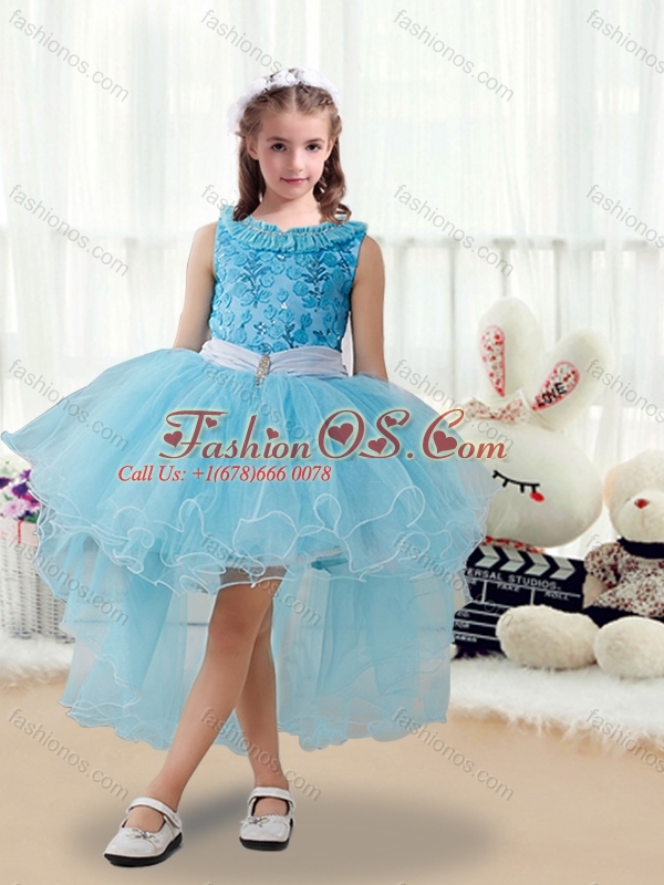2016 Latest High Low New Style Little Girl Pageant Dresses with Belt and Appliques