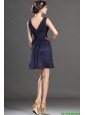 2016 Latest V Neck Short Navy Blue Prom Dresses with Beading