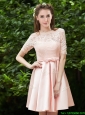 2016 Lovely High Neck Short Sleeves  Mother of the Bride Dresses  with Lace and Bowknot