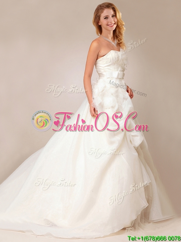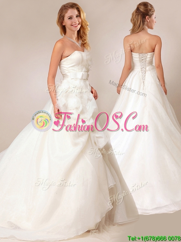 2016 Lovely Princess Bowknot and Ruffled Wedding Dresses with Court Train