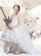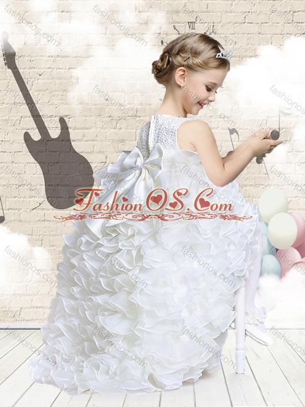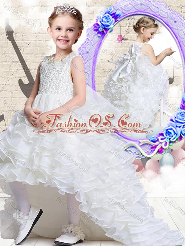 2016 Lovely Scoop High Low White New Style Little Girl Pageant Dresses with Ruffled Layers