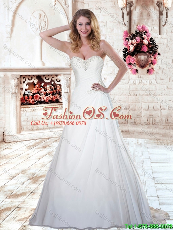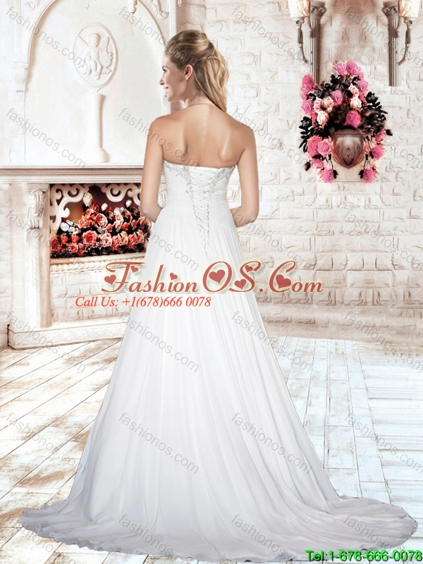 2016 Luxurious A Line Sweetheart White Elegant Wedding Dresses with Brush Train