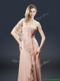 2016 Luxurious One Shoulder Appliques Prom Dresses in Peach