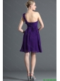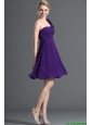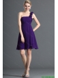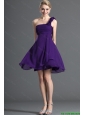 2016 Modest One Shoulder Purple Short Prom Dress with Hand Made Flowers