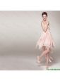 2016 New Arrival High Low Baby Pink Prom Dress with Appliques and Ruching
