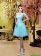 2016 New Style A Line Laced Bridesmaid Dresses with Appliques in Aqua Blue