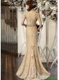 Home >  Prom Dresses >  Customized Prom Dresses > 2016 New Style Column V Neck Lace Prom Dresses with Brush Train