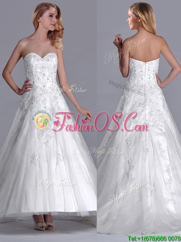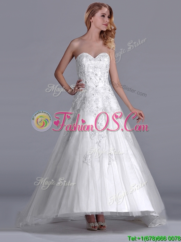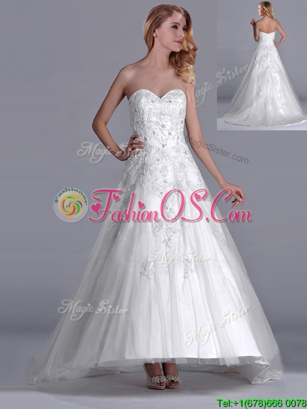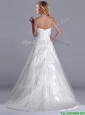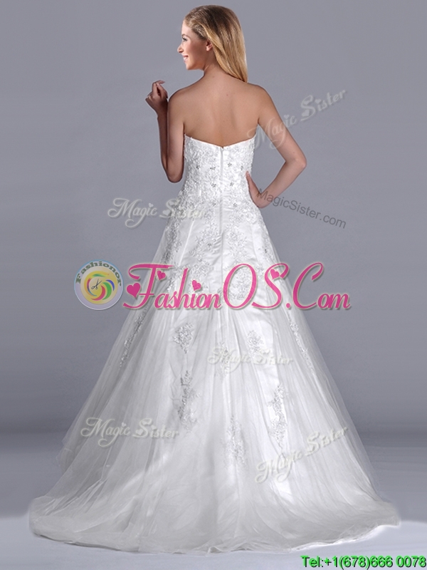 2016 Popular A Line Brush Train Tulle Zipper Up Wedding Dress with Beading and Lace