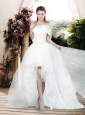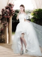 Home >  Wedding Dresses >  Romantic Wedding Dresses > 2016 Pretty Appliques and Bowknot High Low Wedding Dresses with Cap Sleeves