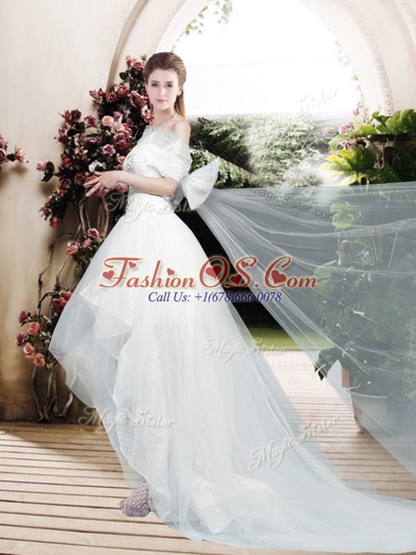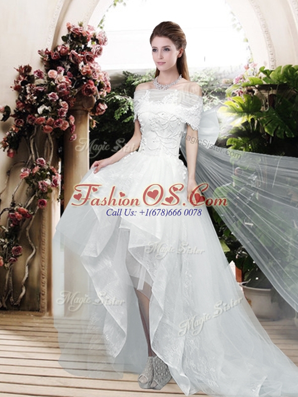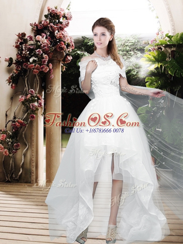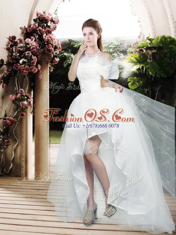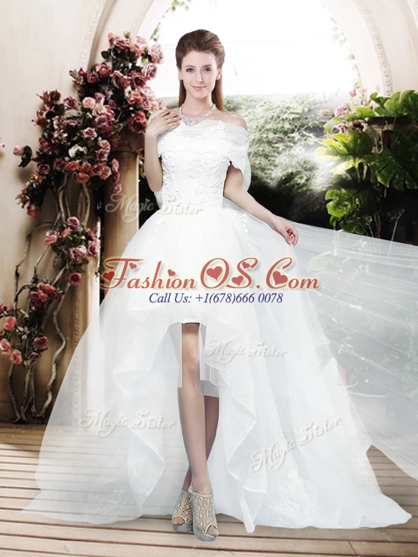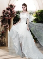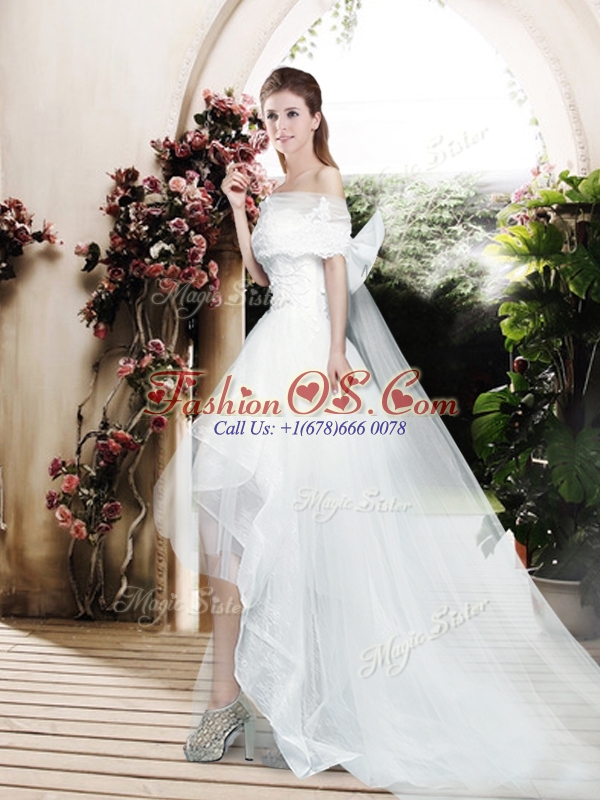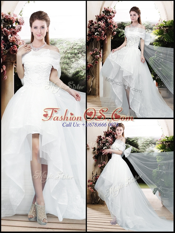 2016 Pretty Appliques and Bowknot High Low Wedding Dresses with Cap Sleeves