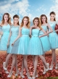 2016 Pretty Aqua Blue Short Bridesmaid Dresses with Belt