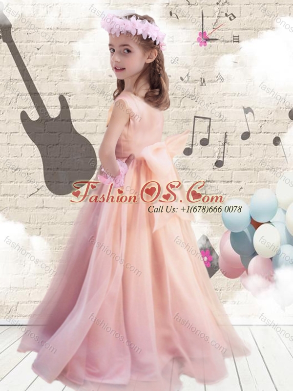 2016 Pretty Ball Gown Peach New Style Little Girl Pageant Dresses with Bowknot