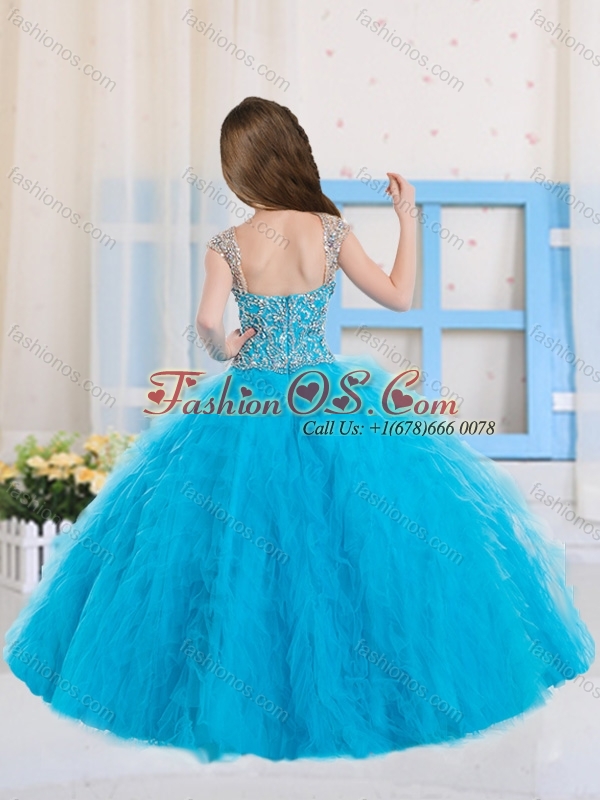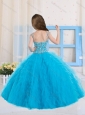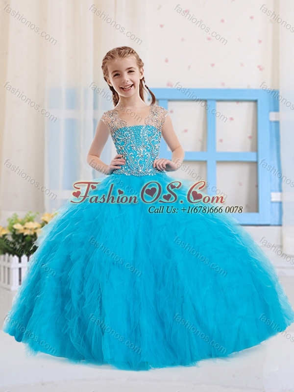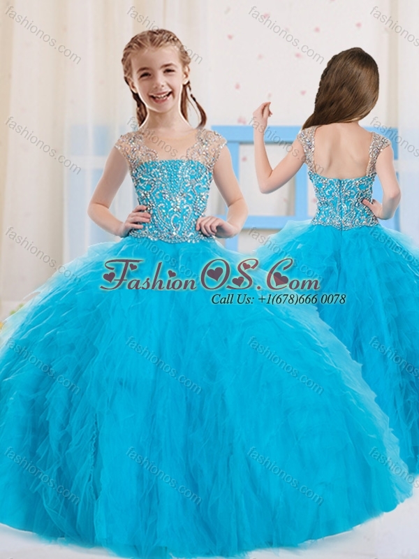 2016 Pretty Ball Gowns Scoop Beaded Mini Quinceanera Dress in Baby Blue