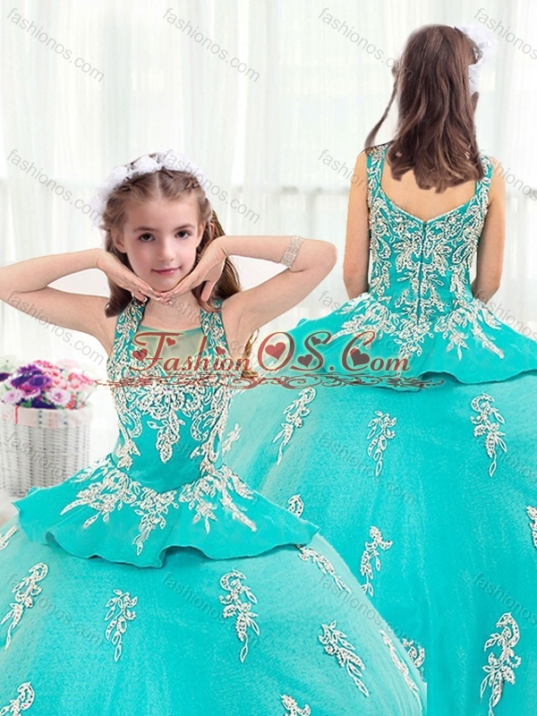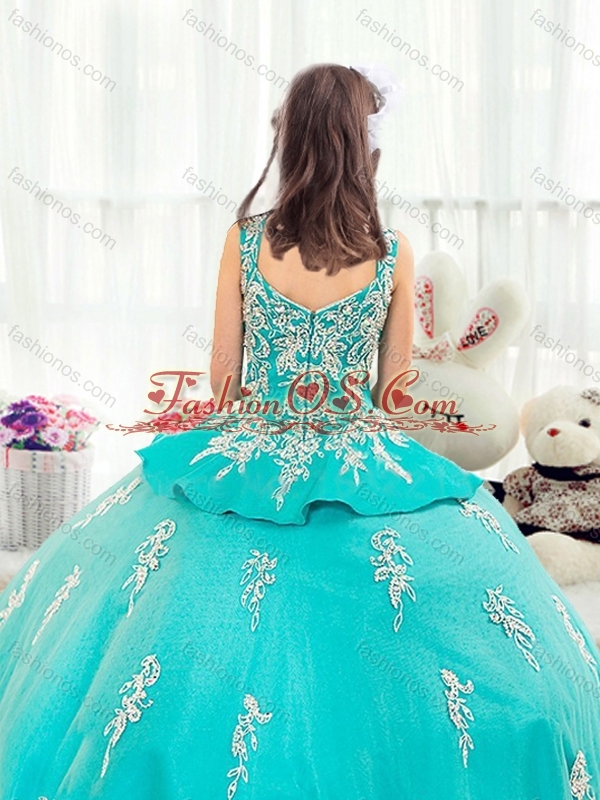 2016 Pretty Straps Turquoise Mini Quinceanera Dresses with Appliques