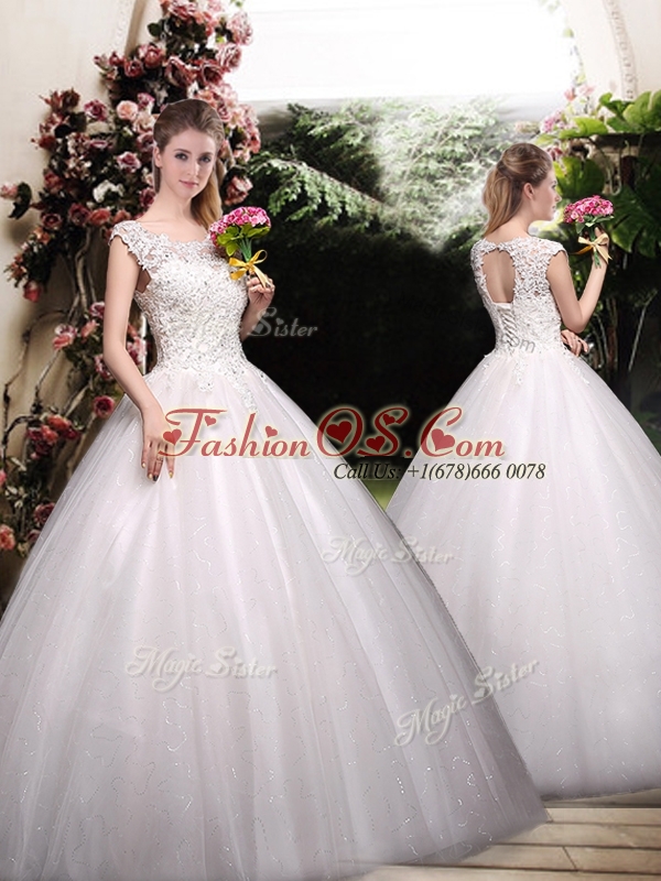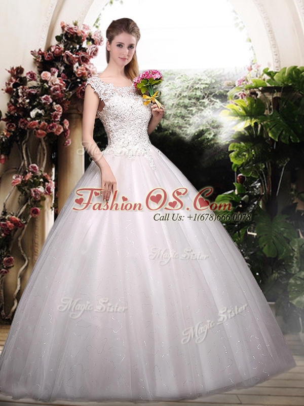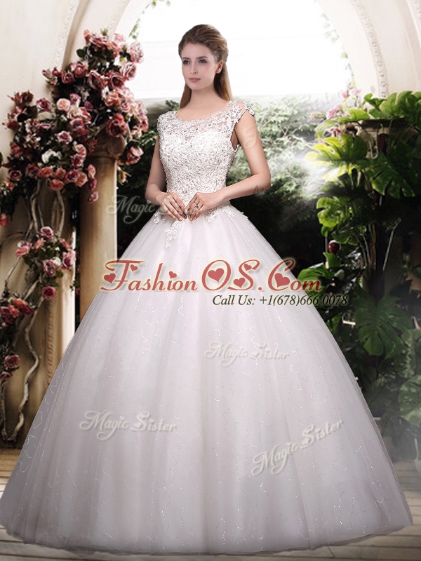 2016 Romantic Ball Gown Scoop Wedding Dresses with Appliques