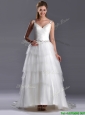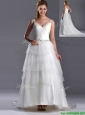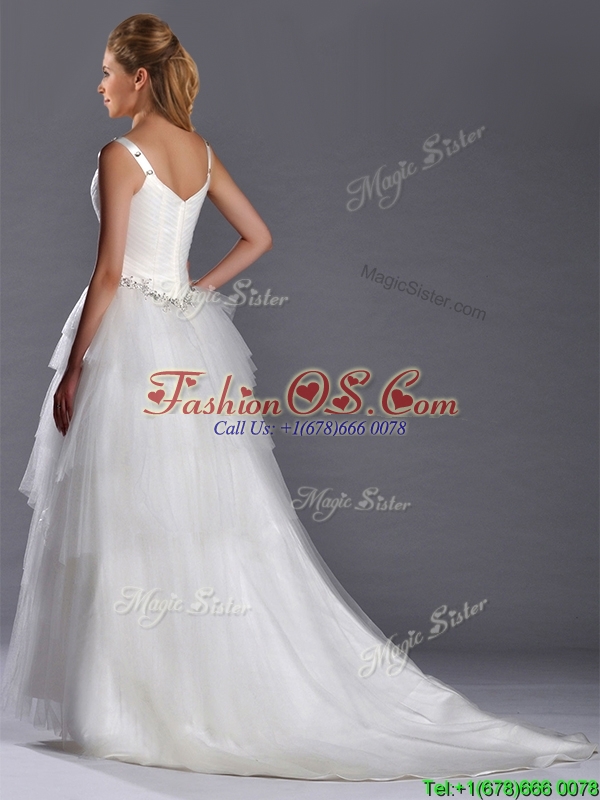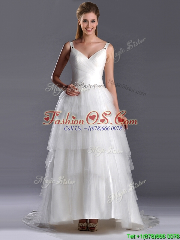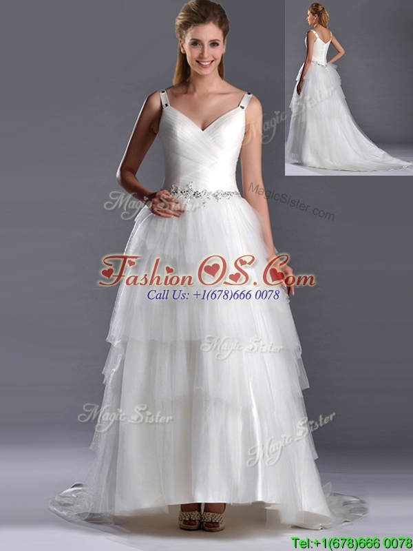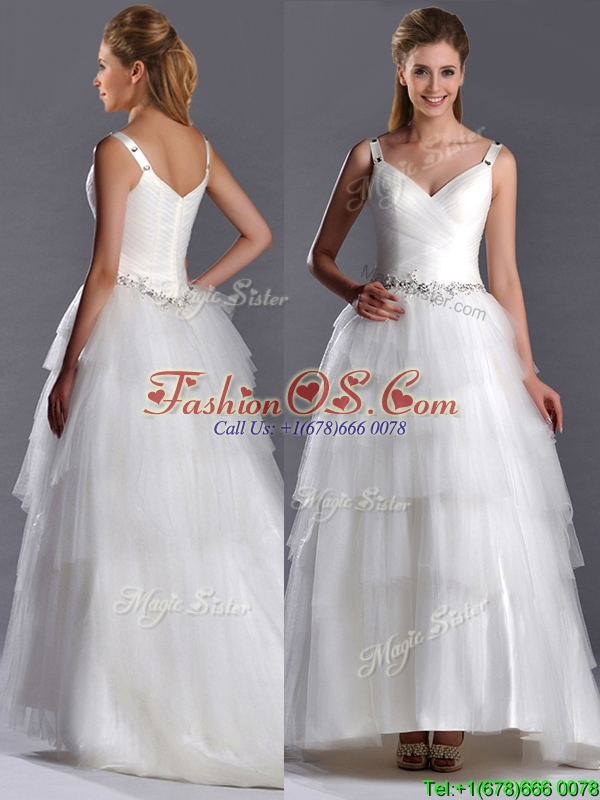 2016 Romantic Straps Princess Tulle Beaded Wedding Dress with Brush Train