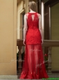 2016 Sexy Belted Red Long Prom Dresses in Tulle and Lace