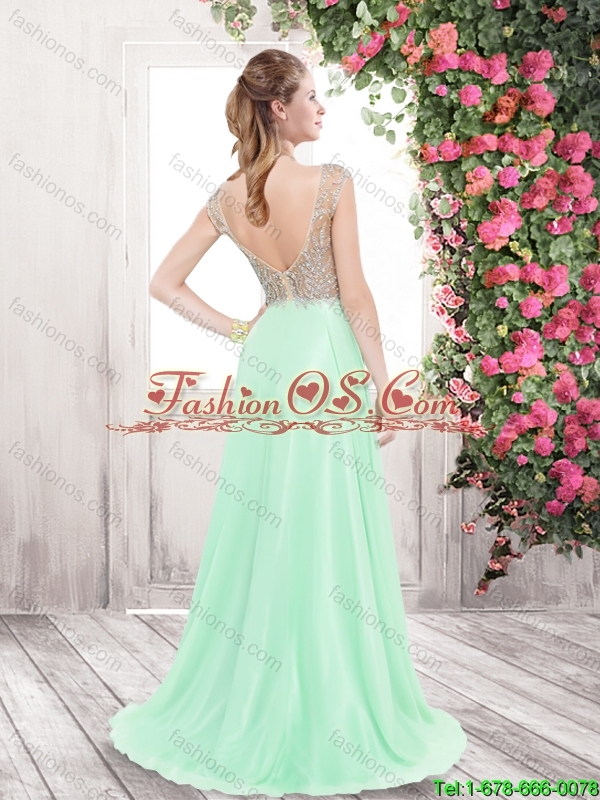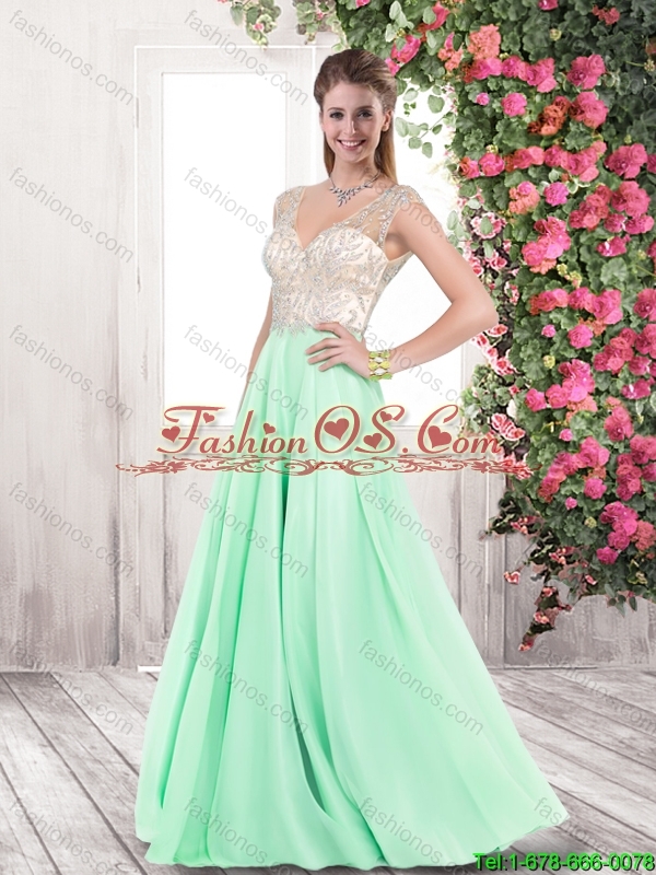 2016 Spring Fashionable V Neck Beaded Prom Dresses with Brush Train