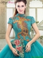 2016 Spring Luxurious High Neck Appliques Quinceanera Dresses with Short Sleeves