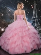 2016 Summer Cheap Beaded Ball Gown Pink Quinceanera Dresses with Floor Length
