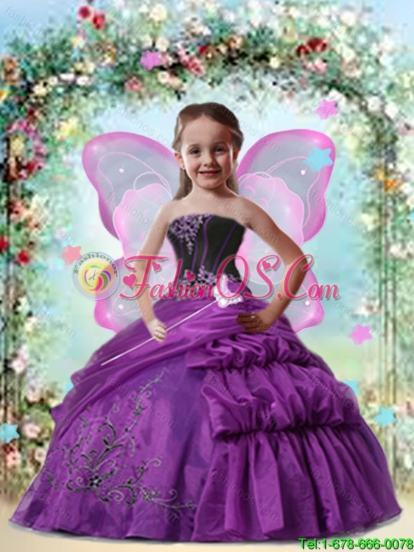 2016 Summer Discount Eggplant Purple Little Girl Pageant Dress with Appliques and Pick-ups
