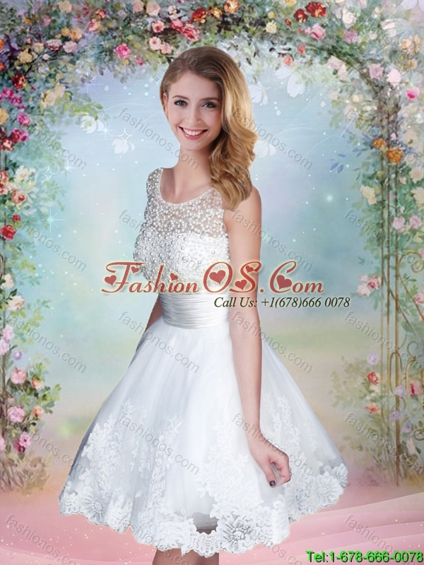 2016 Summer New Short Elegant Wedding Dresses with Venetian Pearl