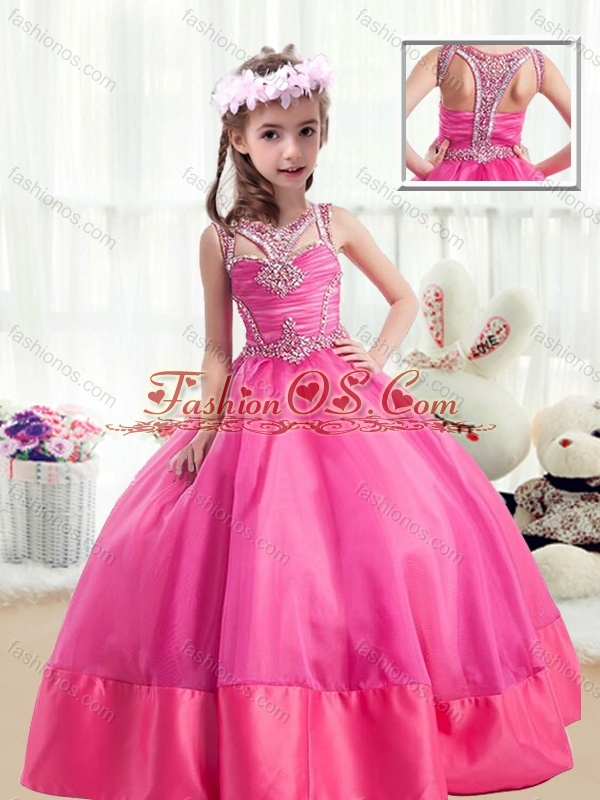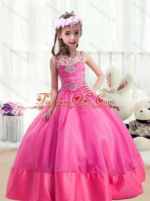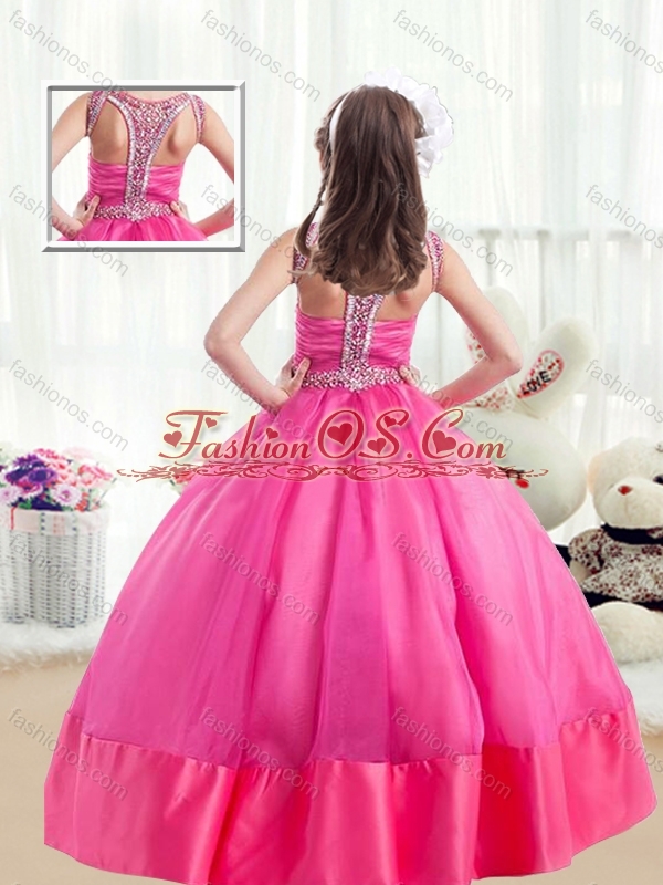 2016 Sweet Ball Gown Beading Mini Quinceanera Dresses in Hot Pink