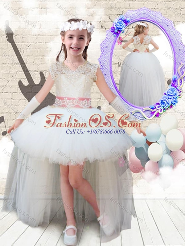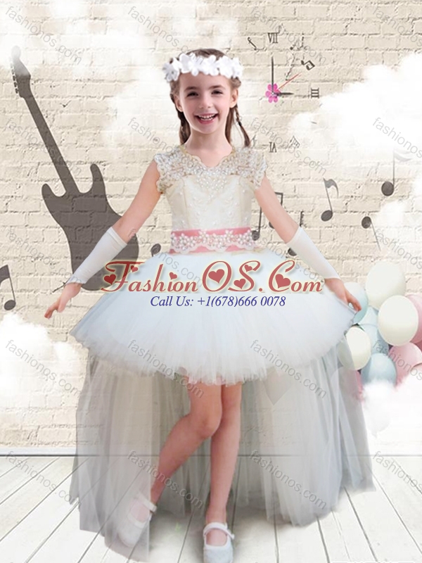 2016 Sweet V Neck High Low Appliques  New Style Little Girl Pageant Dresses
