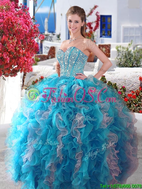 Home >  Quinceanera Dresses >  Chic Quinceanera Dresses > 2016 Visible Boning Beaded and Ruffled Quinceanera Gown in Red and White