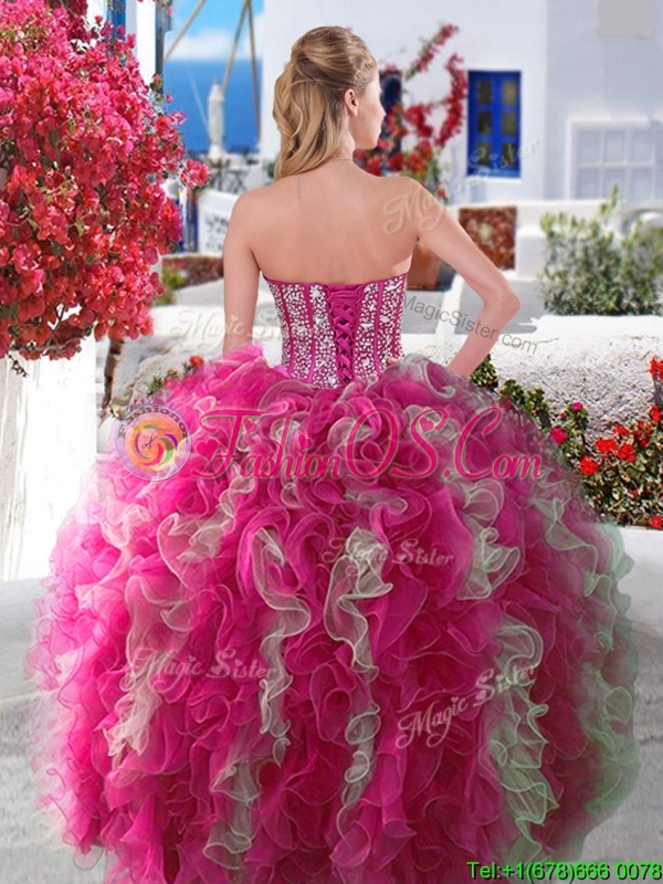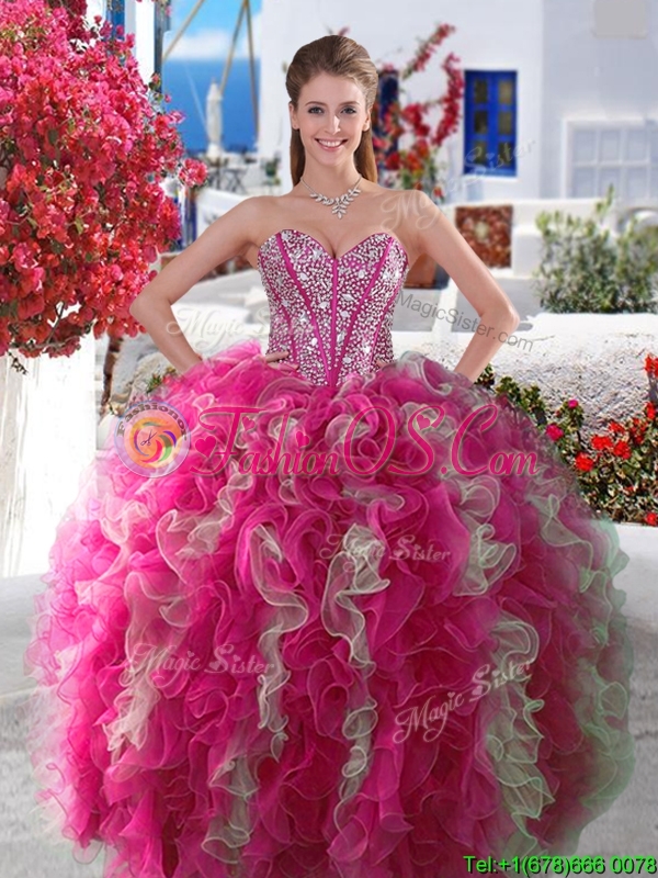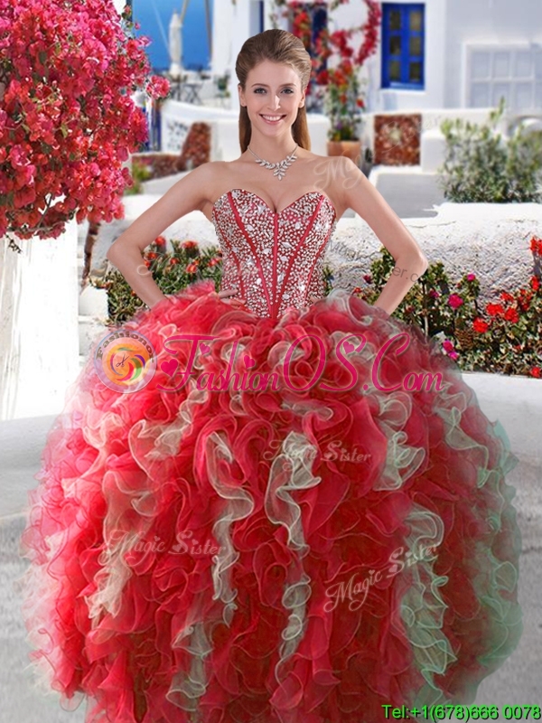 2016 Visible Boning Beaded and Ruffled Quinceanera Gown in Red and White