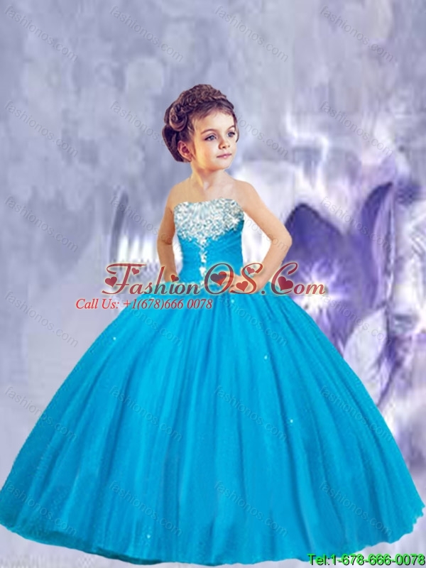 2016 Winter New Style Blue Little Girl Pageant Dress with Beading