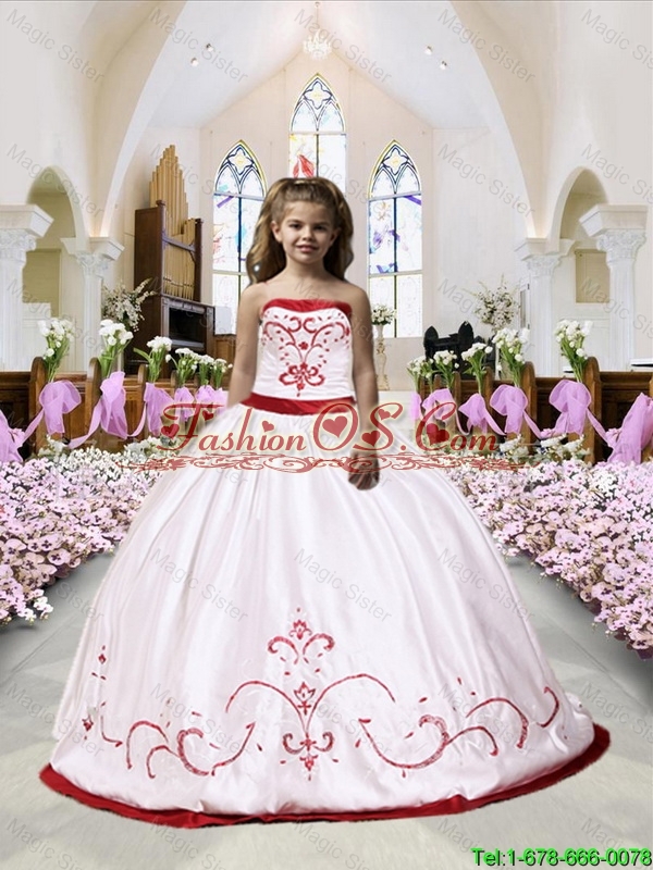 2016 Winter New Style Embroidery Satin Little Girl Pageant Dress in White