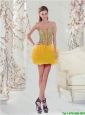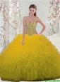 Home >  Quinceanera Dresses >  Detachable Quinceanera Skirts > 2016 Winter Perfect and Detachable Sweetheart Yellow Modest Quinceanera Dresses with Beading and Ruffles