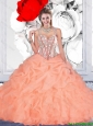2016 Winter Perfect Straps Orange Detachable Quinceanera Dresses with Beading