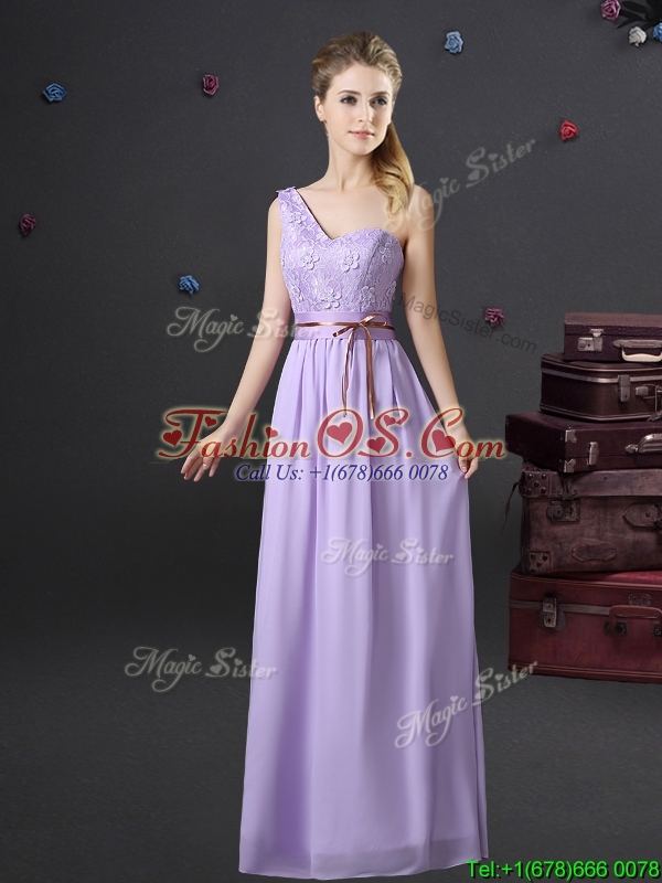 2017 Beautiful Belted and Applique Lavender Prom Dress with One Shoulder