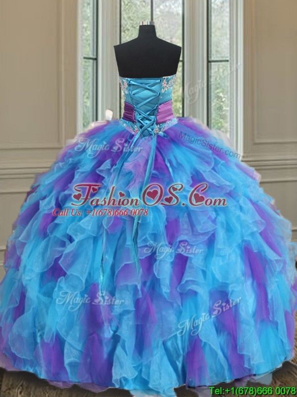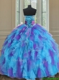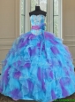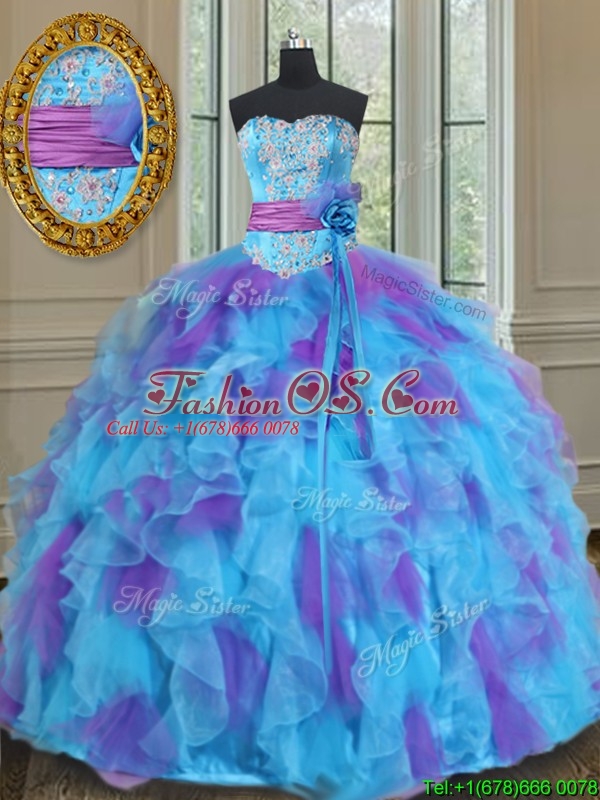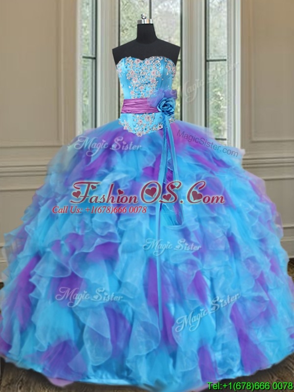 2017 Best Sweetheart Organza Blue and Purple Quinceanera Gown with Handmade Flower