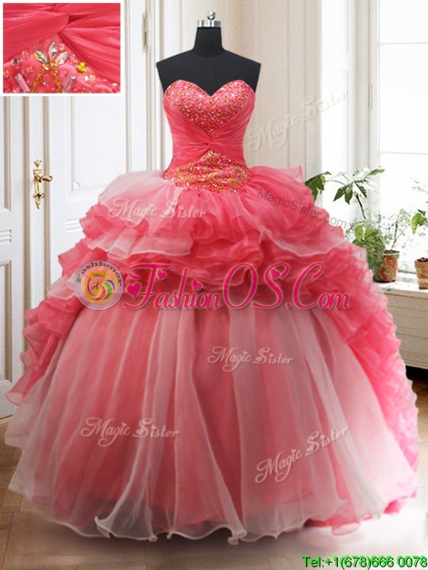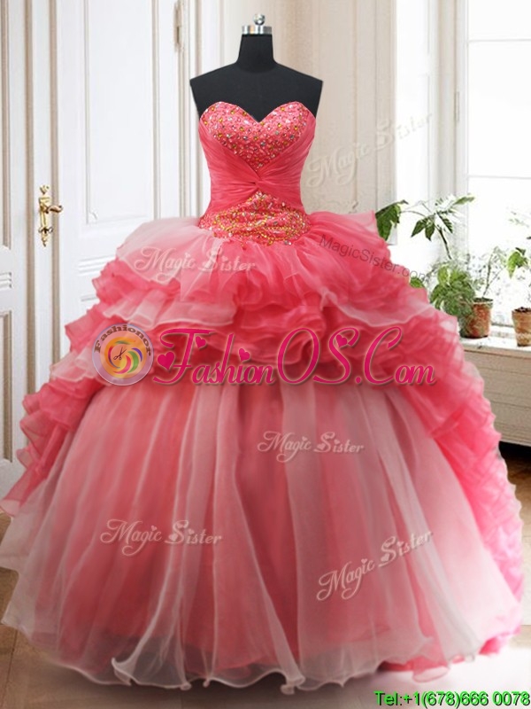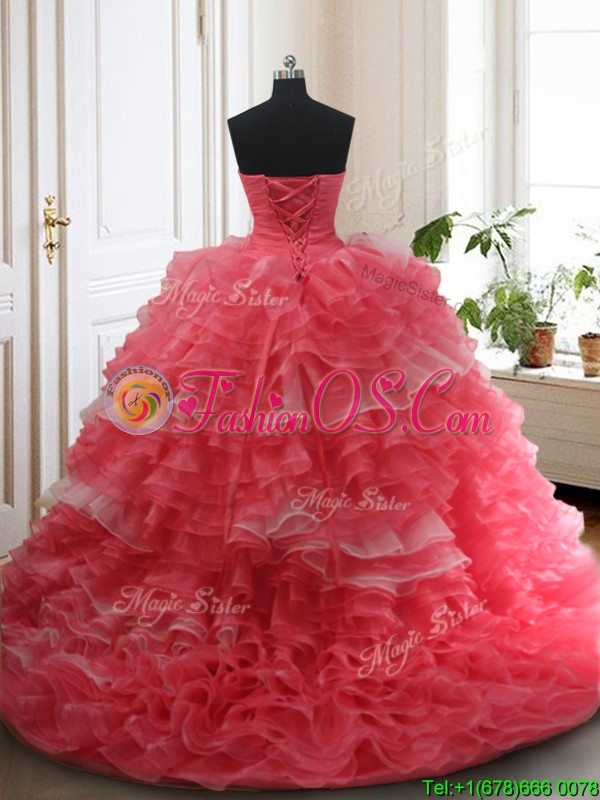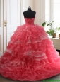 2017 Brush Train Red and White Quinceanera Dress with Beading and Ruffled Layers