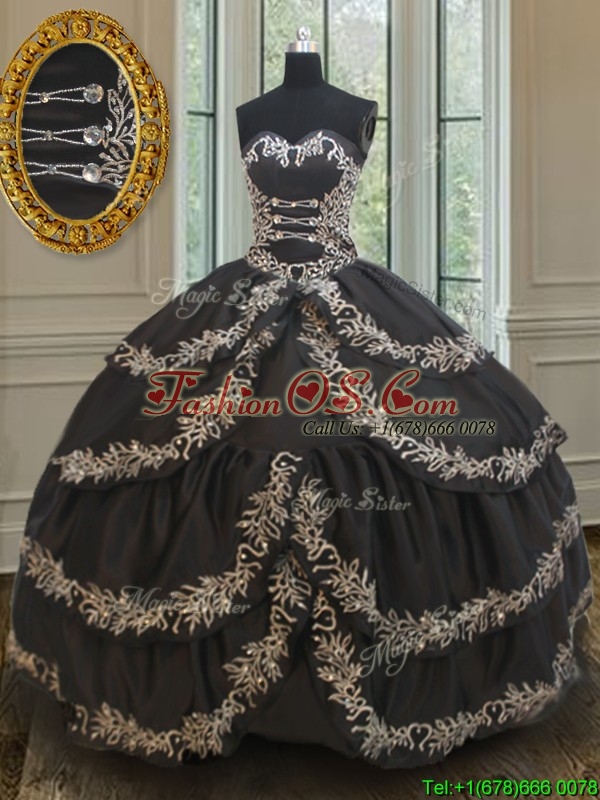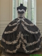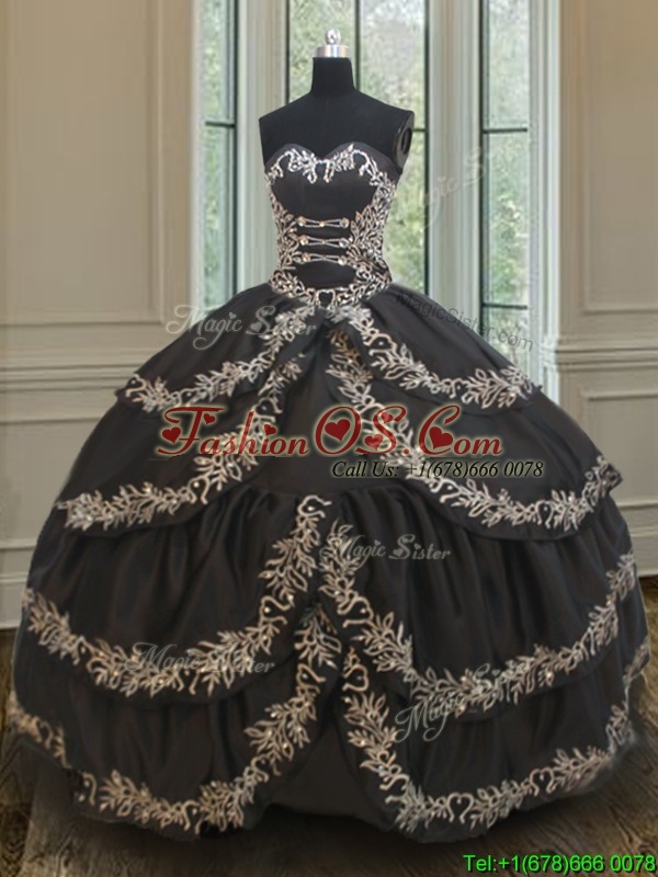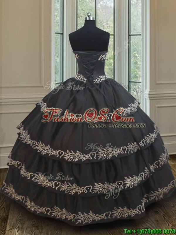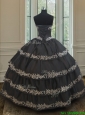 2017 Exclusive Taffeta Black Sweet 16 Dress with Embroidery and Ruffled Layers