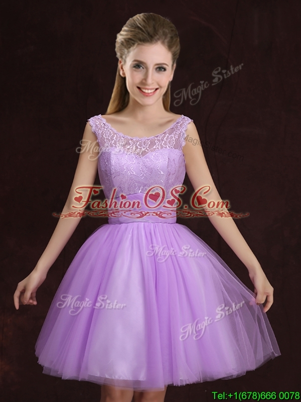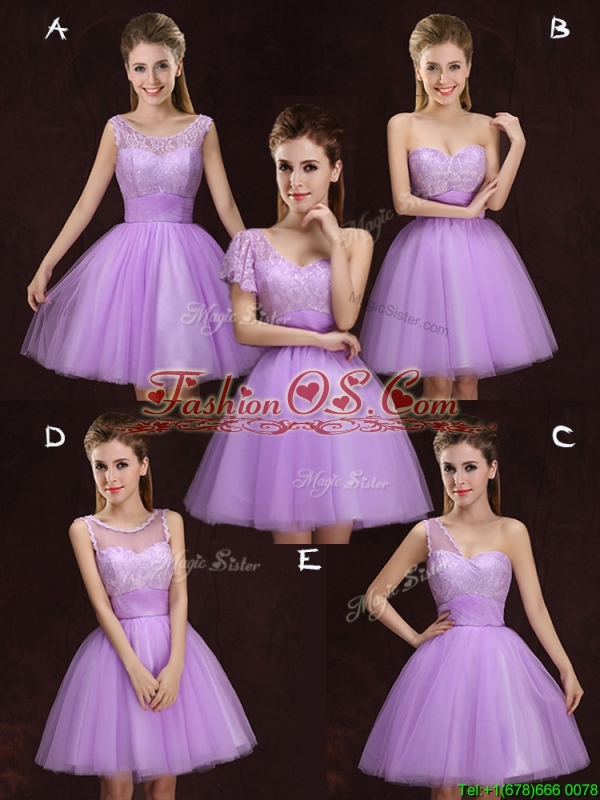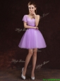 2017 Fashionable Lilac Short Prom Dress with Lace and Ruching