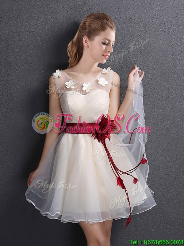 2017 Lovely See Through Scoop Champagne Prom Dress with Appliques